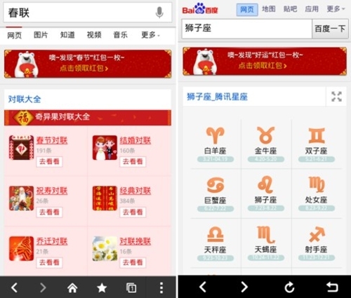怎样在百度里签到搜索有红包 答: 1、打开手机上的百度,在首页点击上方的搜索框,搜索【