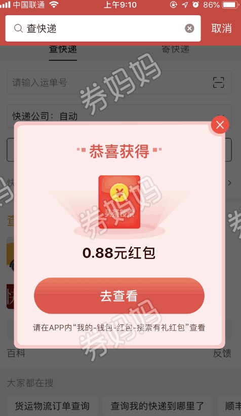 搜有红包】;2、在搜索结果结果页面,首先完成签到任务,在弹出的窗口中点击【去搜索】;3、在成功搜索指定的内容后,将弹出签到红包,点击【开】;4、然后将随机获得一定金额的红包,点击【领更多红包】;5、返回到搜有红包活动页面后,在“大家都在搜”的下方,点击任意搜索内容,或者点